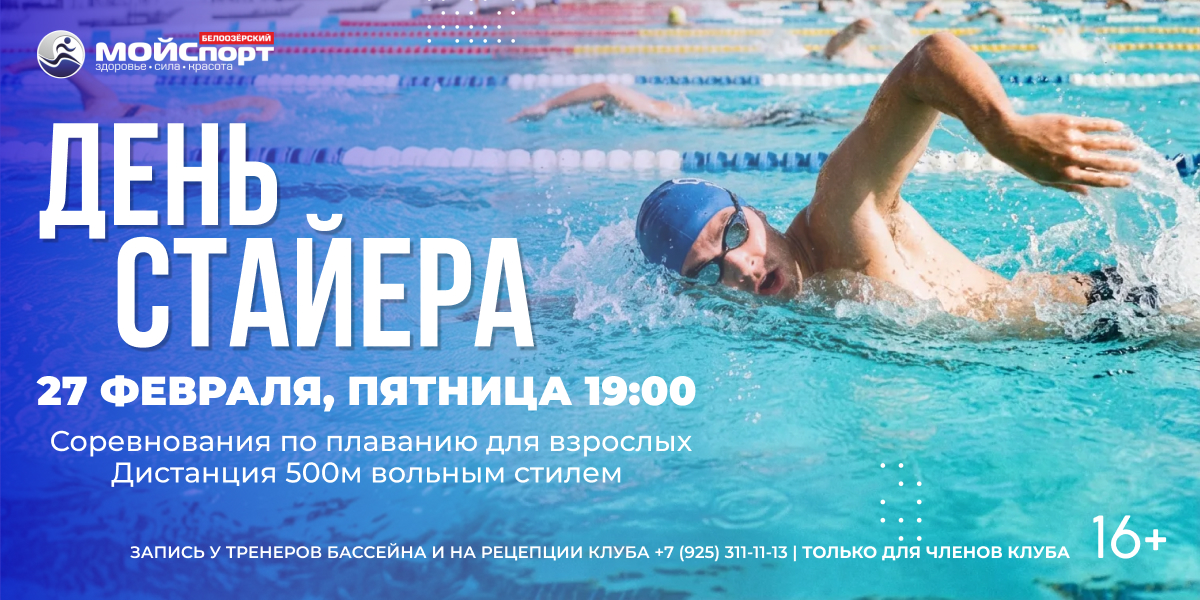 Уже совсем скоро, 27 февраля в 19:00, в нашем клубе «МОЙСпорт» Белоозерский состоится увлекательное соревнование для взрослых пловцов — «День Стайера».