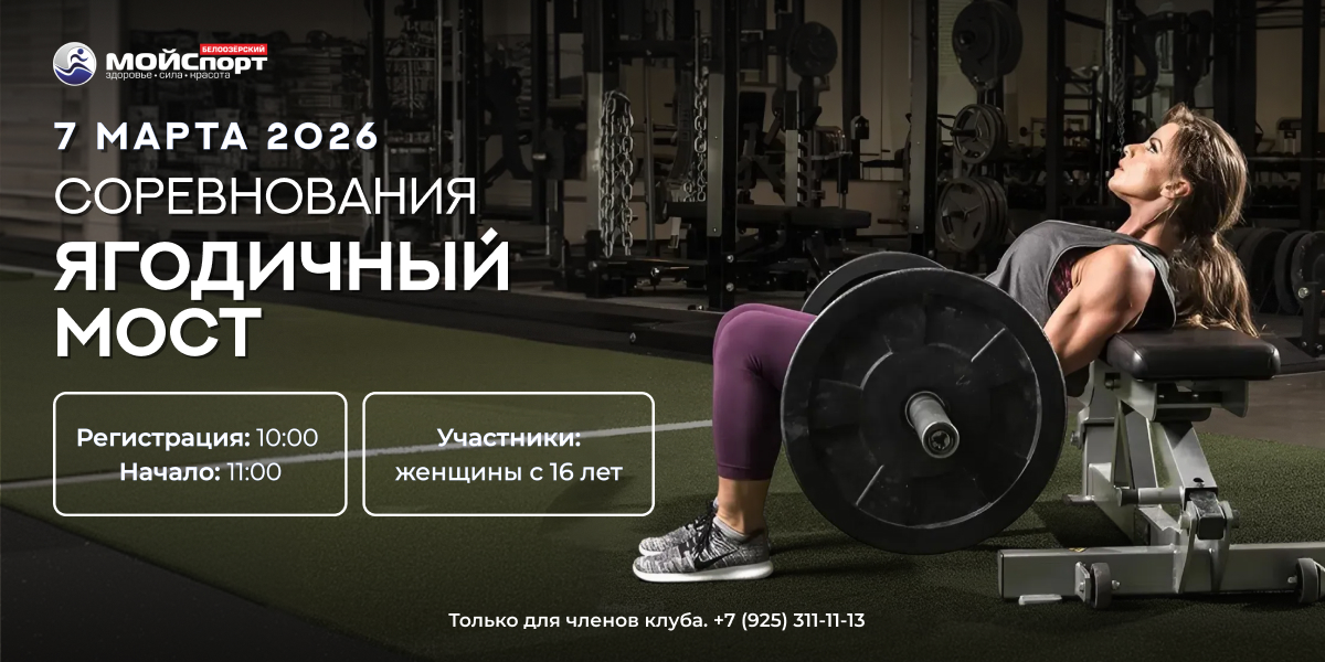 Фитнес-клуб «МОЙСпорт» Белоозерский приглашает вас принять участие в соревнованиях по ягодичному мосту!⠀